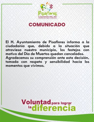 El ayuntamiento de Pisaflores, Hidalgo, informó sobre la cancelación de los festejos del Día de Muertos debido a “la situación que atraviesa nuestro municipio”.