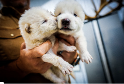 Matt James, director de animales en Colossal, supervisó los embarazos y los partos. Supo que los experimentos eran un éxito en cuanto vio el pelaje blanco de un cachorro.