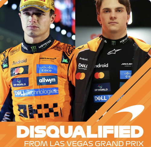 Norris y Piastri fueron descalificados del Gran Premio de Las Vegas por incumplir el artículo 3.5.9 del reglamento técnico de la FIA. Dicha medida estipula que la plancha de madera de la parte inferior del monoplaza debe tener un grosor superior a nueve milímetros.