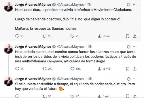 “Ha quedado claro que el camino nunca fueron las alianzas en las que tanto insistieron los partidos de la vieja política y los poderes fácticos a través de una multimillonaria campaña, articulada de forma ilegal”, destacó en redes.