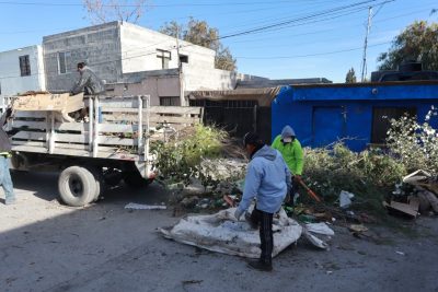 En este punto, ubicado entre las calles 2, 13 y Praxedis Guerrero, cuadrillas de la Dirección de Medio Ambiente y Desarrollo Sustentable trabajaron para retirar desechos acumulados que ponían en riesgo la salud e integridad de las y los habitantes de esta zona de la ciudad.
