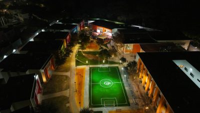 - Junto con la escuela, se entregaron una área de juegos principal, un anfiteatro que incluye un escenario para presentaciones y actividades.