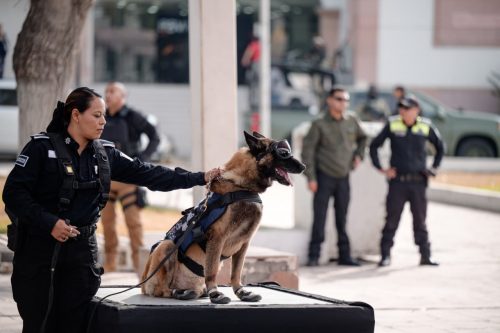Díaz González apuntó que las tareas de seguridad en la capital de Coahuila se realizan desde diferentes frentes y uno de ellos es la unidad canina K9, en la que los binomios participan en tareas de proximidad social, pero también en labores de prevención y reacción ante el delito.