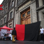 Hoy todas las sucursales del Nacional Monte de Piedad en el Pais amanecieron cerradas en sus puertas sendas banderas rojo y negro enarbolando un huelga.