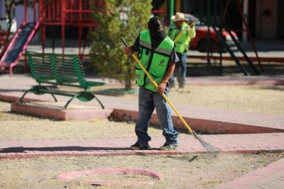 Sumado a esto, y dentro de las acciones municipales de mantenimiento y rehabilitación de los espacios públicos en la ciudad, brigadas de Medio Ambiente y Desarrollo Sustentable intervinieron con acciones de limpieza general y deshierbe en diferentes plazas públicas de la ciudad.