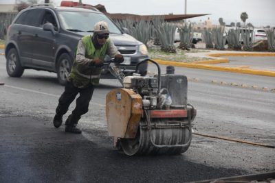 De manera paralela, cuadrillas de la Dirección de Infraestructura y Obra Pública realizan trabajos de reparación del pavimento en puntos específicos sobre el bulevar Venustiano Carranza, una de las vialidades más transitadas de la ciudad, a través de maquinaria especializada a base de calor.