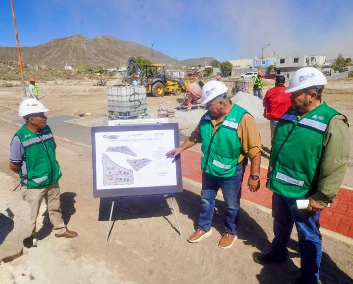 Ramos Arizpe, Coahuila de Zaragoza; a 21 de octubre de 2025.- El alcalde Tomás Gutiérrez Merino encabezó este martes la supervisión de la construcción de la plaza pública en la colonia Urbivilla del Real, obra dentro de la estrategia “Con Obra Tras Obra Ramos se Transforma”.
