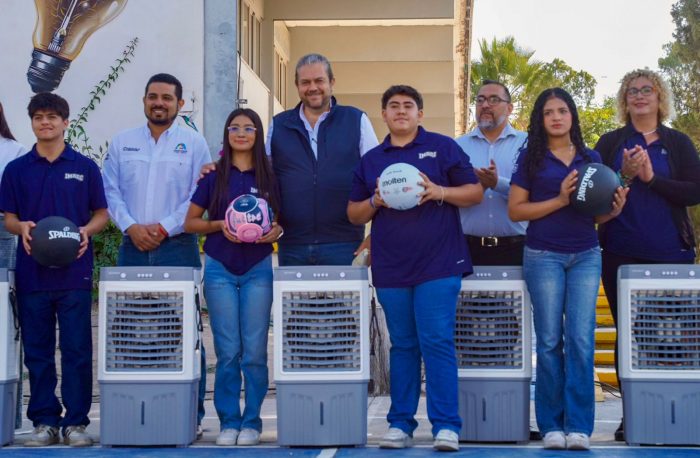 El secretario de Desarrollo Social, José Humberto García Zertuche, explicó los detalles del beneficio otorgado. “En esta entrega número 27 del programa se destinó una inversión de 100 mil pesos en apoyo a 450 alumnos de nivel bachillerato, con la entrega de 2 minisplit, 11 enfriadores y material de oficina, fortaleciendo las condiciones académicas y de infraestructura del plantel”, detalló el funcionario.