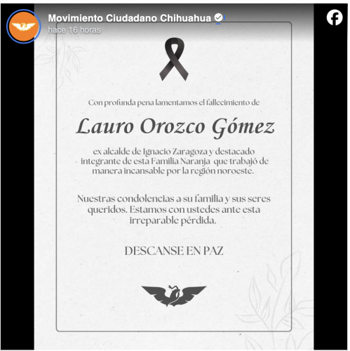 Ante esta noticia, la dirigencia estatal de Movimiento Ciudadanoen Chihuahua lamentó los hechos y se solidarizó con el círculo cercano al exedil.