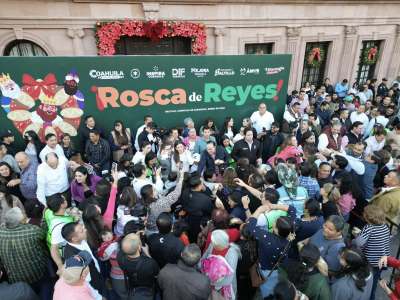 Desde la capital del Estado, el gobernador Manolo Jiménez Salinas, junto a su esposa Paola Rodríguez López, presidenta honoraria de Inspira Coahuila, partieron y repartieron entre miles de coahuilenses la tradicional Rosca de Reyes, evento con el que finalizan las actividades de Villamagia en todo el estado, y a donde acudieron esta temporada más de un millón de visitantes en todas sus sedes.