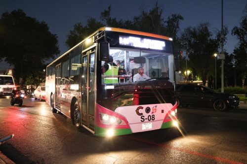 Javier Díaz González, acompañado por Víctor de la Rosa Molina, director del IMMUS, arrancó la ruta poniente que arrancó en la colonia Valencia y se trasladó en ella hasta la Presidencia Municipal de Saltillo.