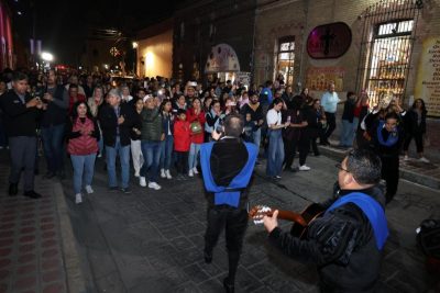 La Callejoneada del Día del Amor y la Amistad fue posible gracias al trabajo coordinado de las Direcciones de Distrito Centro y Turismo, con el Instituto Municipal de Cultura y el área de Difusión Cultural de la Universidad Autónoma de Coahuila.