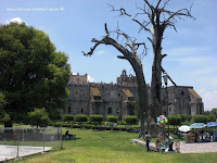 Recorrimos las maravillosas calles de Yuriria hasta llegar al jardín que está cerca del Ex Convento de San Agustín. De inmediato nos maravilló el contraste entre la viveza del pasto y las plantas y los que parecían ser los cadáveres de dos grandes árboles.