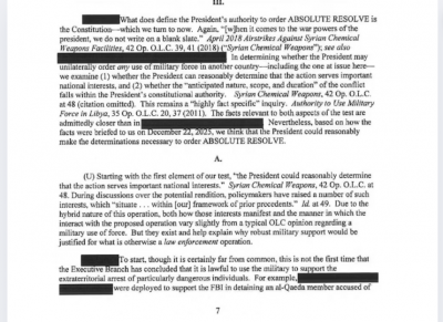 La OLC concluyó que, mientras la operación se mantuviera dentro de los parámetros planteados —sin alcanzar el nivel de una guerra—, la autoridad presidencial sería suficiente para autorizarla.