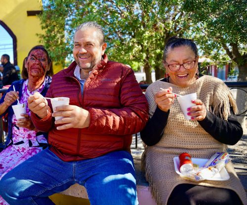 Ramos Arizpe, Coahuila de Zaragoza; a 30 de octubre de 2025.- El alcalde Tomás Gutiérrez Merino se reunió con integrantes del programa Ola Verde y Empleo Temporal en la Plaza Pistaches, donde disfrutaron de un colorido concurso de disfraces y un espacio de convivencia en reconocimiento a su labor diaria. “Ola Verde” es un programa municipal que brinda empleo digno a mujeres ramosarizpenses dedicadas a las labores de limpieza, deshierbe y embellecimiento urbano en colonias, escuelas, parques y vialidades de todo el municipio.