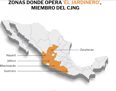 El Jardinero operaba en Nayarit, Jalisco, Zacatecas, Michoacán y Guerrero, según las averiguaciones de las autoridades estadounidenses.