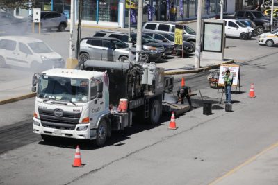 Los trabajos consisten en la reposición de carpeta asfáltica y nivelación de superficies, lo que permite una circulación más ágil y segura.