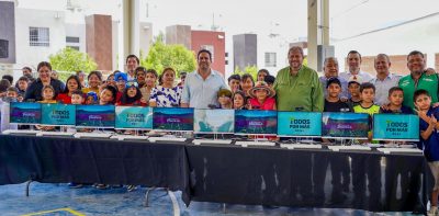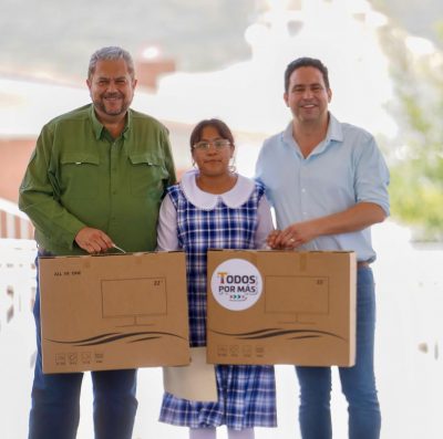 En este marco, el alcalde de Ramos Arizpe, Tomás Gutiérrez Merino, y el alcalde de Saltillo, Javier Díaz González, encabezaron la entrega de equipos de cómputo en la primaria Javier López del Bosque, ubicada en la colonia Hacienda Narro, como parte de los compromisos asumidos para fortalecer la infraestructura educativa de la región.